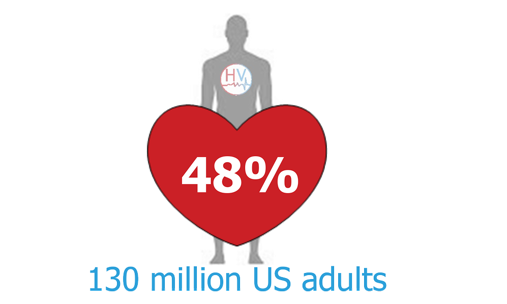 48% of US adults suffer from high blood pressure (hypertension). Black people suffer at a higher rate than other ethnicities